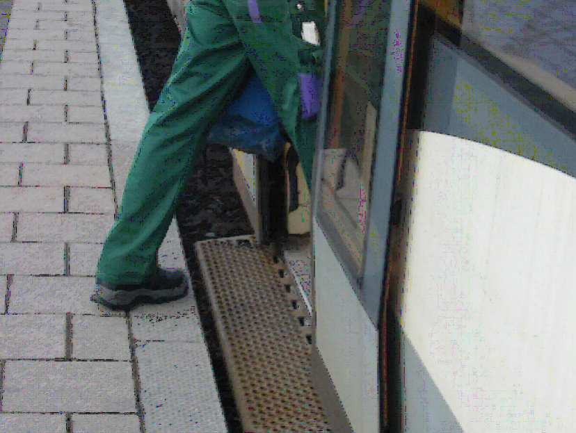 (Der Abstand Bahnsteig zum Fahrzeug beträgt in der Regel 5 bis maximal 10 cm. Im EBO-Bereich fahren zur Überbrückung des Spaltes die Trittstufen aus, so dass auch dort die geforderten 5 bis 10 cm eingehalten werden. Bei Haltepunkte in Radien (z.B. Haltestelle Riegelsberghalle) gibt es allerdings Bereiche, die einen deutlich größeren Abstand als 10cm haben. Diese sind auf dem Boden extra beschildert und werden in den Fahrzeugen auch gesondert angesagt.)