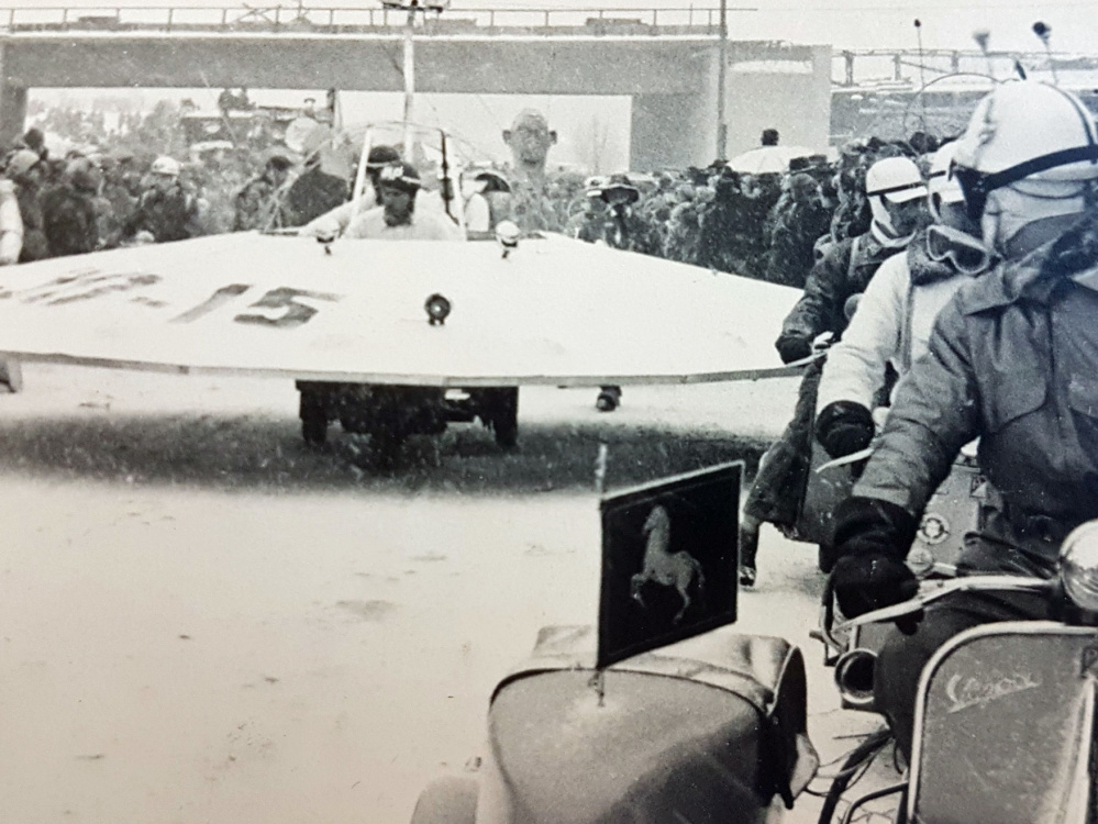 Historische Faschingsfotos: Ufo auf der Stadtautobahn vor deren Öffnung - Volker Mildenberger