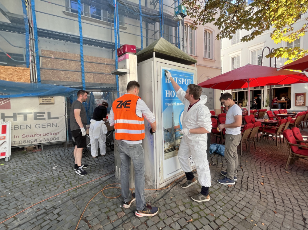 Am St. Johanner Markt hat zudem das Stadtplanungsamt der WLAN-Station einen frischen Anstrich verpasst. Auch die Stadtwerke Saarbrücken haben diverse Verteilerkästen gereinigt, unter anderem in der Scheidter Straße und der Roonstraße.
