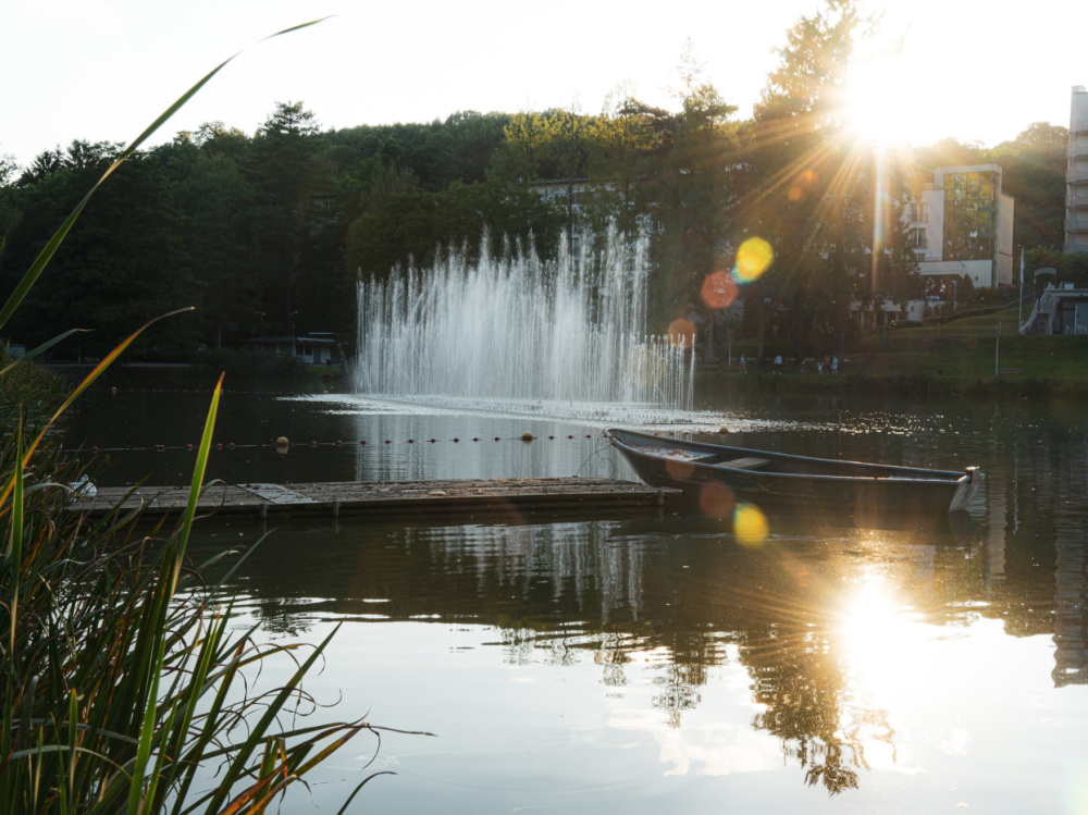 Der Deutschmühlenweiher ist das Herzstück des DFG. Zu den Hauptattraktionen zählt die beliebte Wasserorgel mit ihrem imposanten Wasserspiel.