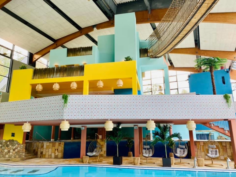 Die neu gestaltete Badewelt in Saarbrücken vermittelt durch tropische Bepflanzung, farbenfrohe Akzente und der beliebten Poolbar ein karibisches Flair.