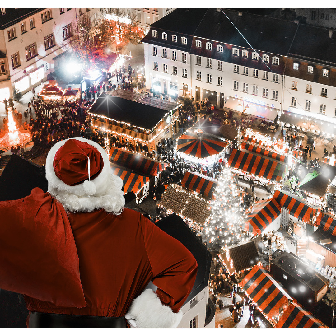 Der fliegende Weihnachtsmann, das Riesenrad und Stände mit Kunsthandwerk, Glühwein und gebrannten Mandeln: Weihnachtsflair in der Bahnhofstraße und auf dem St. Johanner Markt.