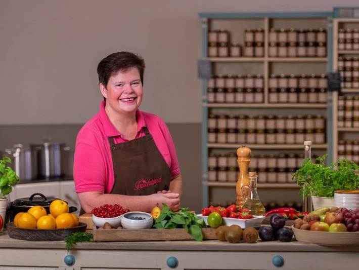Im Deutsch Französischen Café gibt es fertige Backmischungen im Glas oder frische Zimtwaffeln und Bratapfel-Konfitüre mit Rum aus eigener Herstellung.