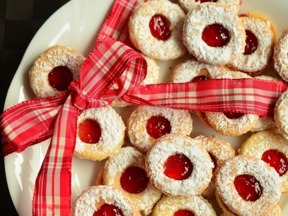 Kirsch-Spitzbuben mit fruchtigem Puderzucker