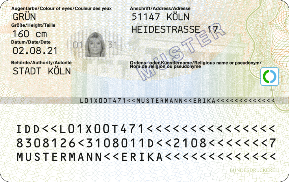 Vorderseite des neuen Bundespersonalausweises ab 2. August 2021 (Quelle: Bundesministerium des Innern) - LHS