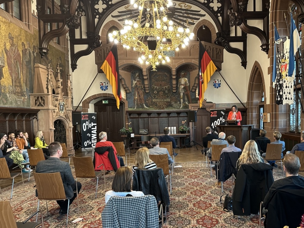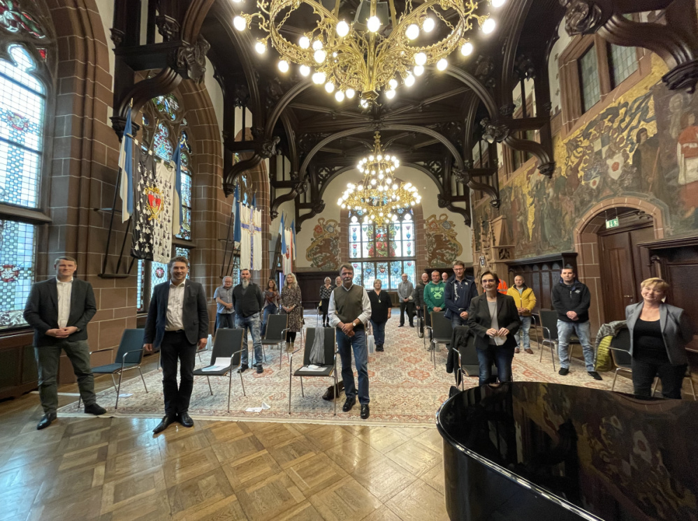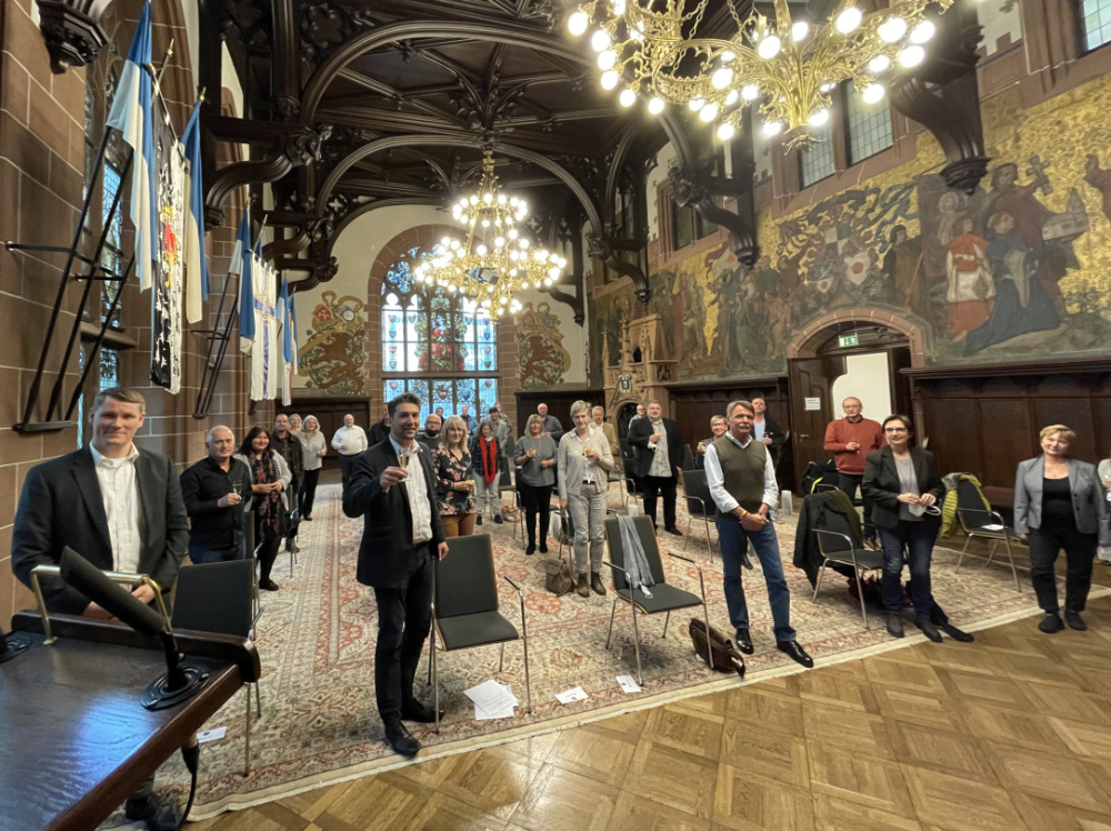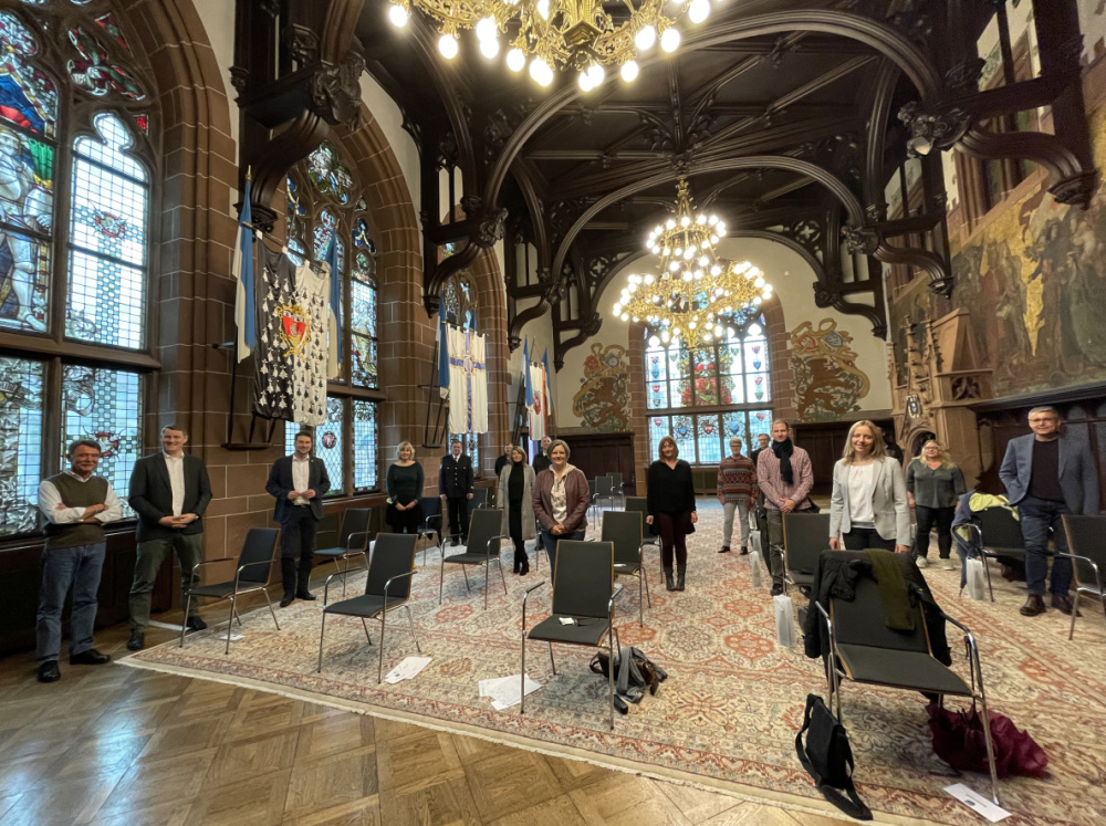 Herzlichen Glückwunsch! Oberbürgermeister Uwe Conradt hat am 2. November 2022 im Festsaal des Rathauses St. Johann Mitarbeiterinnen und Mitarbeiter aus den verschiedensten Bereichen der Stadtverwaltung und der Eigenbetriebe geehrt. Die Mitarbeiterinnen und Mitarbeiter feiern ihr 25-, 30- und 40- und 50-jähriges Dienstjubiläum.