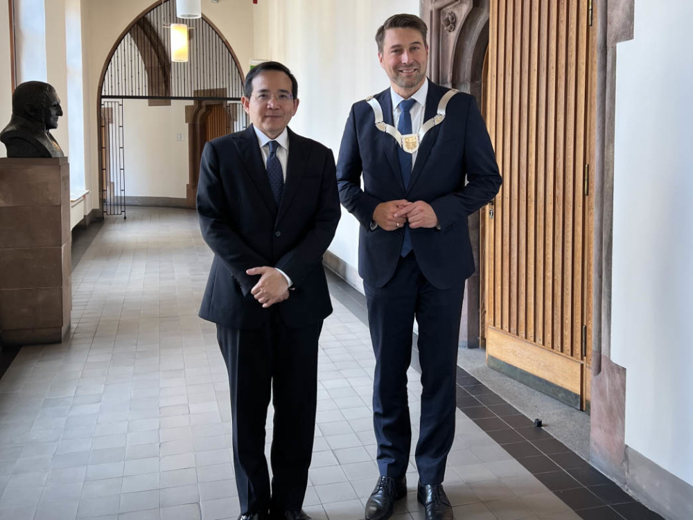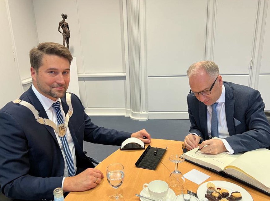 Oberbürgermeister Uwe Conradt empfängt im Rathaus St. Johann regelmäßig Ehrengäste der Landeshauptstadt.