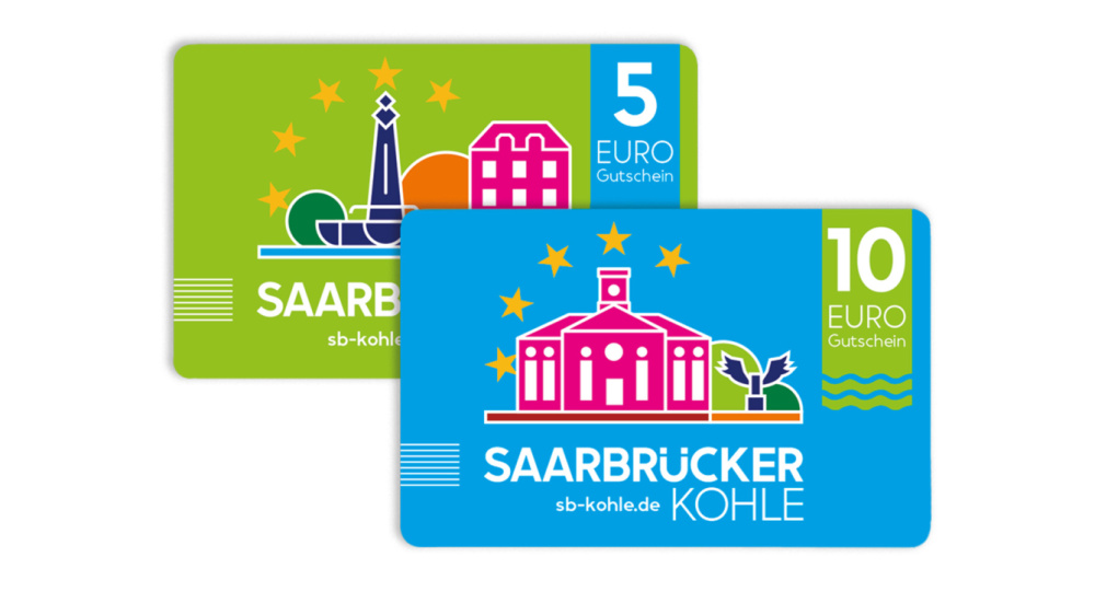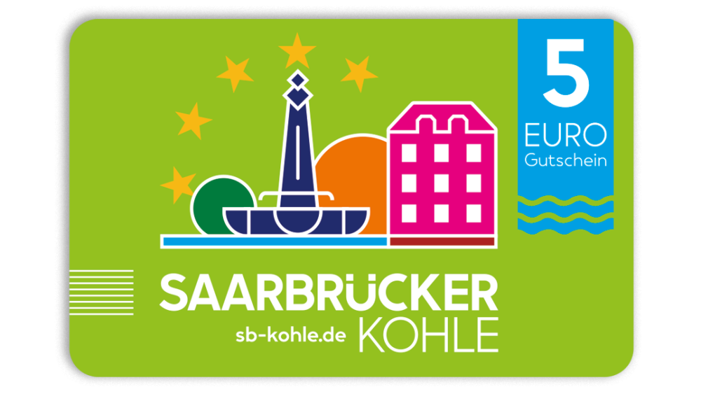 On peut acheter des bons « Saarbrücker Kohle » d’une valeur de 5 ou de 10 euros chacun, ce qui permet d’offrir une somme de son choix à 5 euros près. Les bons ont la taille d’une carte de crédit et sont fournis avec un emballage gratuit. Vous avez le choix entre une enveloppe-cadeau avec carte.