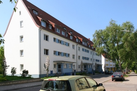 Vor wenigen Jahren wurden diese Häuser komplett saniert und auf der Gebäuderückseite hat die Siedlung Balkone bis zu den Dachwohnungen hin angebaut. Insbesondere von dort aus hat man einen fantastischen Ausblick. Die Grünflächen hinter den Wohnhäusern sind sehr gut gestaltet und bieten eine hervorragende Aufenthaltsqualität. Auch die Vorgärten bestechen durch individuelle Bepflanzungen unseres hauseigenen Garten- und Landschaftsbaus.