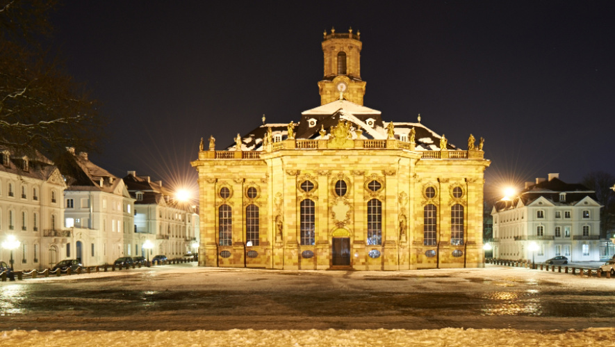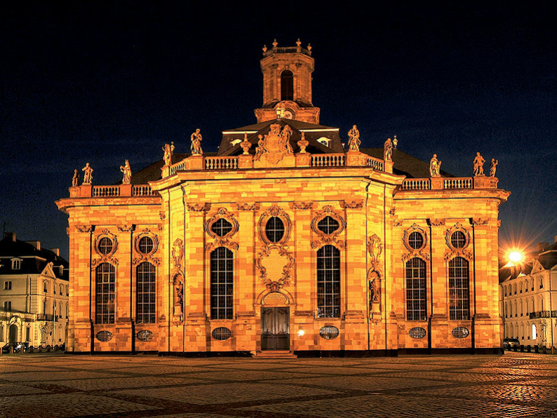 It is considered to be one of the most stylistically and aesthetically perfect Protestant baroque churches in Germany, comparable to the Michel in Hamburg or the Frauenkirche in Dresden. Together with the Ludwigsplatz square, the surrounding palace and civil servants' houses, it is part of a unique baroque ensemble completed in 1775. After being completely destroyed during WWII, the church and palace were meticulously and authentically restored. Looking down Wilhelm-Heinrich-Strasse, you have a direct view of the opposite bank of the Saar, a further example of the visual concepts typical to Stengel's architecture.