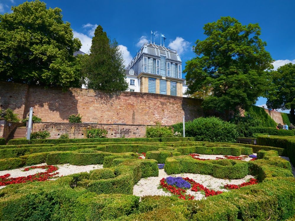 À l'origine, ce vaste jardin d'étendait en terrasses jusqu'à la Sarre et fut aménagé en jardin baroque entre 1760 et 1765. À la fin du XIXe siècle, il fut partiellement recouvert de constructions. Aujourd'hui, le le jardin se dinstingue par son emplacement poétique et offre une vue magnifique.