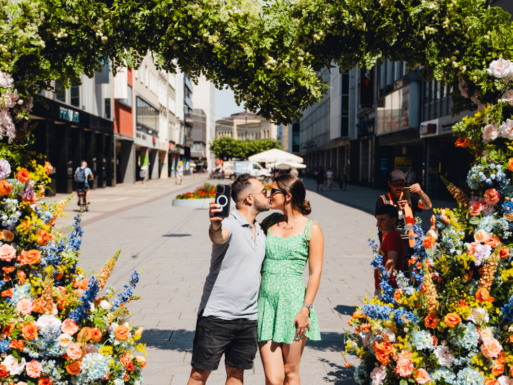 Le nouveau point photo du cœur vous attend au milieu de la Bahnhofstrasse. Richement décoré d'une multitude de fleurs, c'est le décor idéal pour des clichés inoubliables !