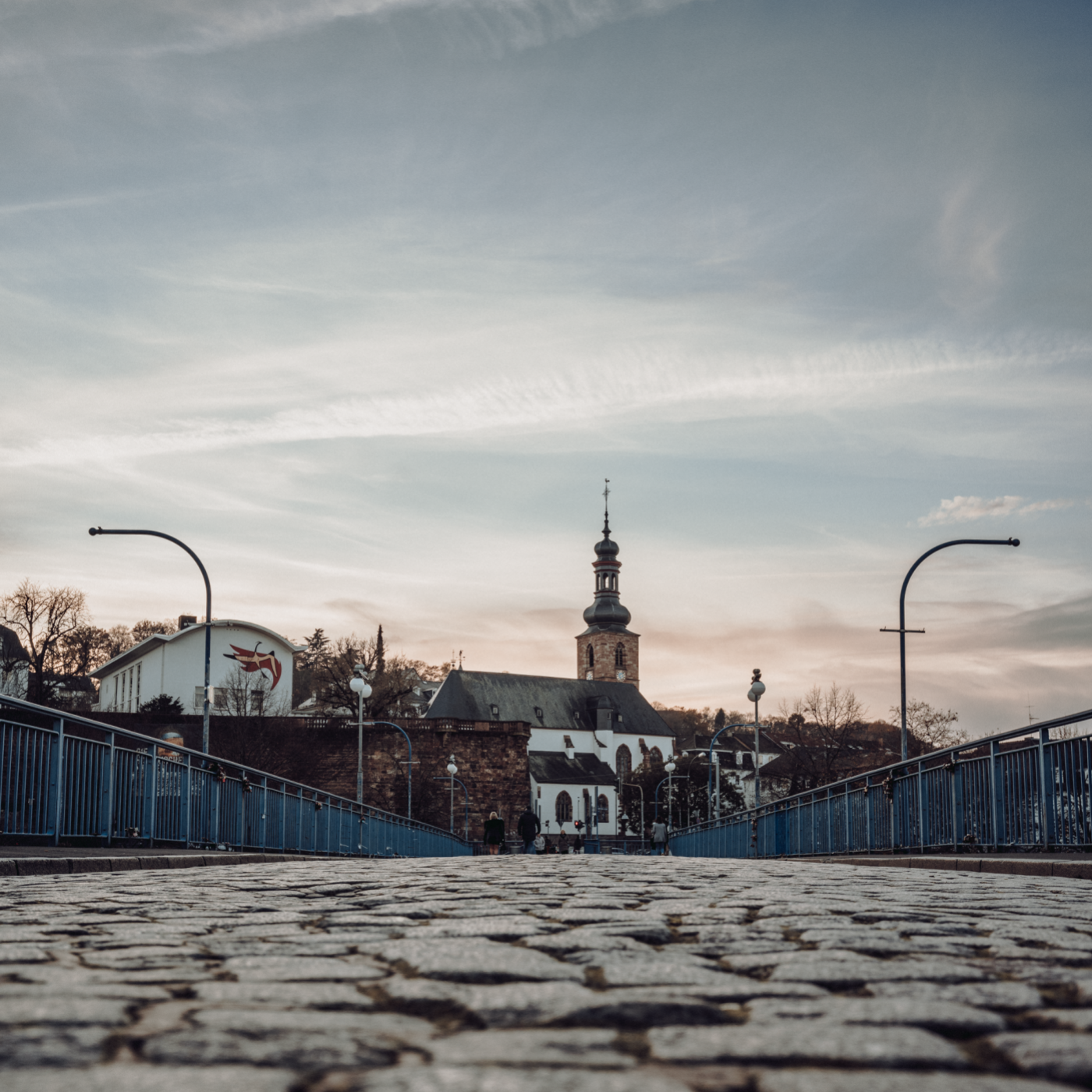 Après avoir été fortement endommagée pendant la Seconde Guerre mondiale, l'église a été reconstruite dans les années 50 et ornée de vitraux réalisés avec art par Georg Meistermann. Dans l'espace du chœur se trouvent les tombeaux des derniers princes de Sarrebruck.
