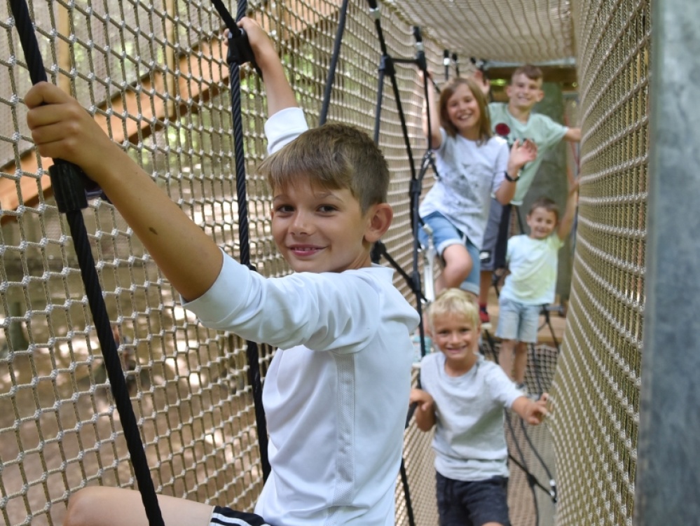 Une expérience unique vous attend sur la Fly-Line – la première tyrolienne en courbe d'Allemagne ! Avec elle, vous volerez littéralement dans les virages et vous serez propulsé par petits sauts directement sous la cime des arbres, sur 370 mètres à travers la forêt. Une attraction spéciale attend également les plus petits à partir de 5 ans : le labyrinthe d'escalade pour enfants. Là, comme les grands, ils pourront grimper avec des amis, sans être accompagnés d’un adulte.
