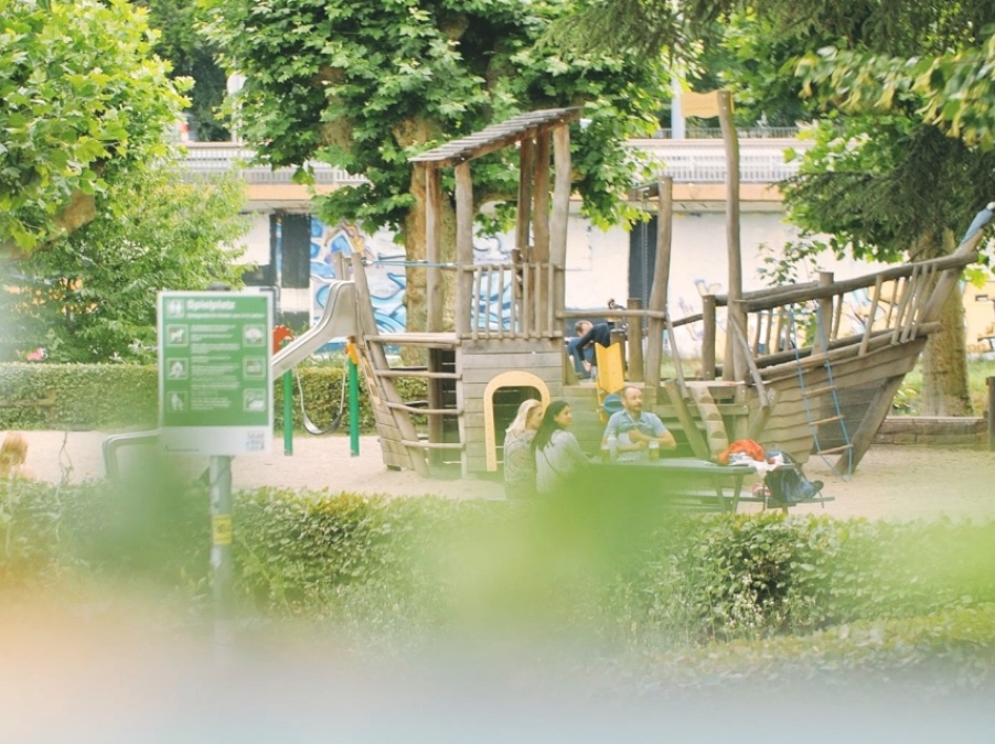 Le « Staden » est un parc au cœur de la ville. Cette oasis de verdure au bord de la Sarre semble avoir été créée spécialement pour les familles. Pourquoi ? Parce que les enfants peuvent se dépenser, grimper, se balancer et faire des châteaux de sable sur les terrains de jeux. Parce que pendant ce temps, les parents et grands-parents peuvent se détendre au biergarten voisin, le « Ulanen-Pavillon ».