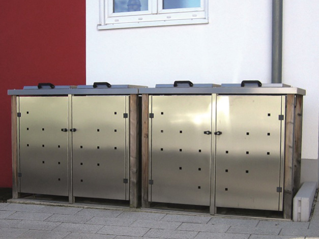 • Als Standplatz für Abfallbehälter gelten auch Abfallschränke. Diese müssen auf einfache Weise und unfallsicher benutzt werden können.